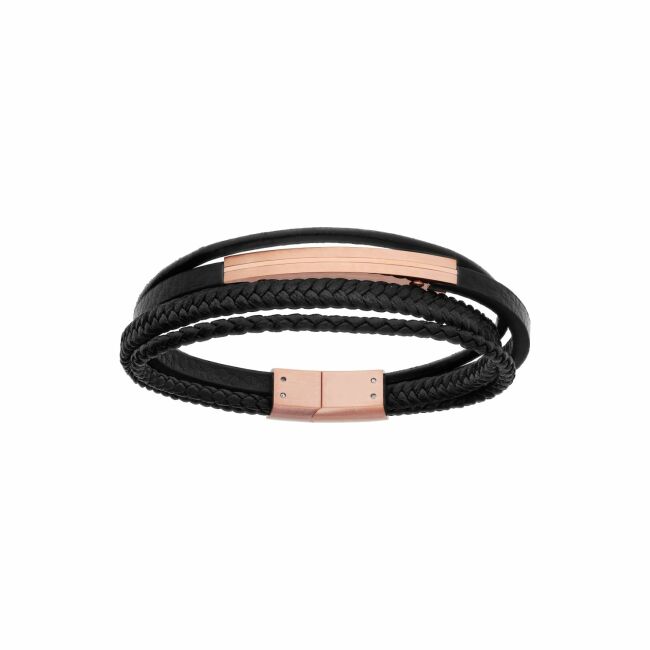 Bracelet en métal doré rose multi rangs cuir bovin noir 20.5cm