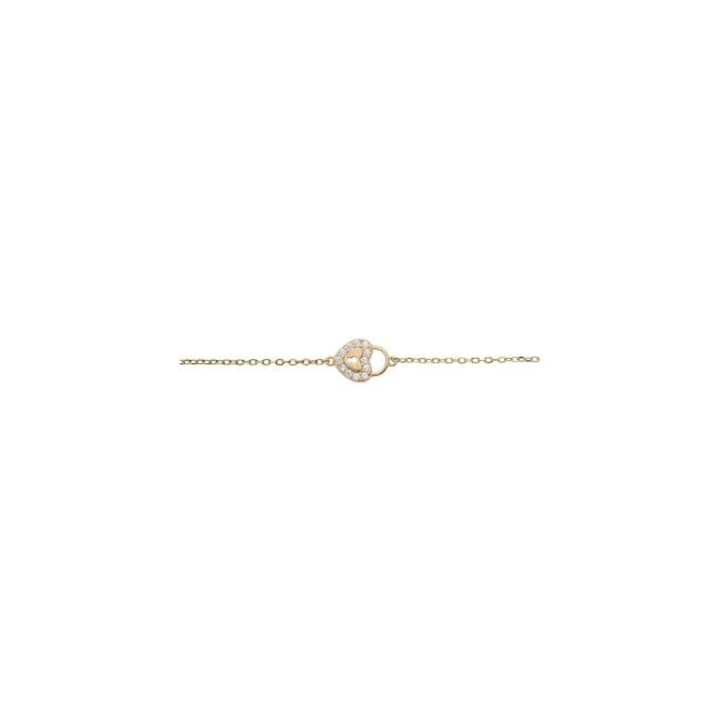 Bracelet plaqué or coeur et cadenas oxydes blancs sertis 16+3cm