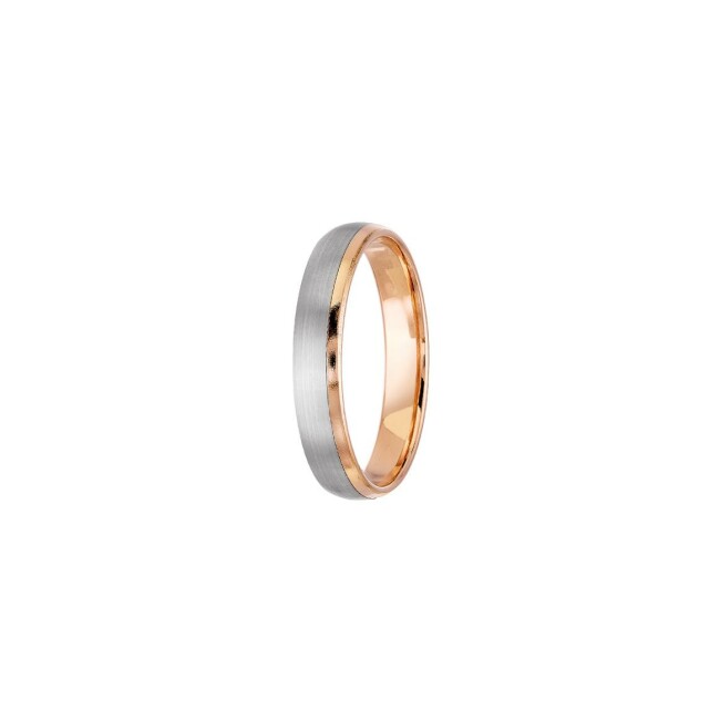 Alliance jonc Pemba en or rose et blanc effet mat et rainure, 4mm
