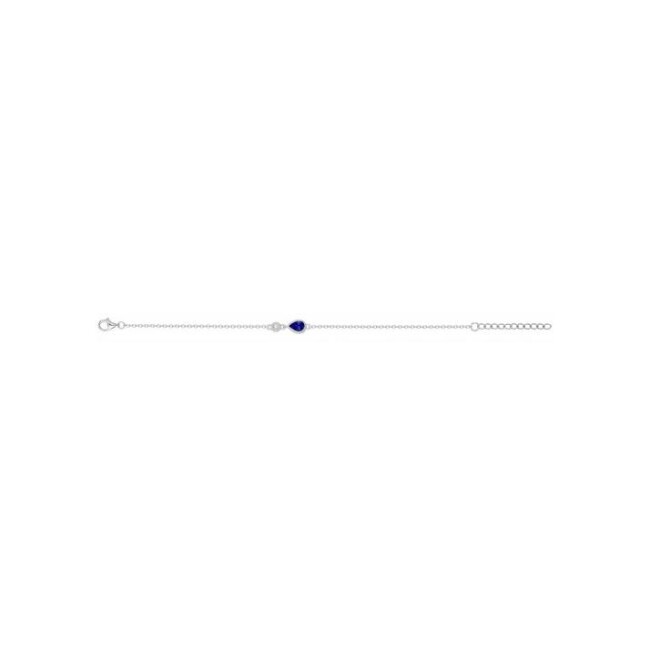 Bracelet en argent rhodié, oxydes de zirconium et pierre de couleur, 18cm