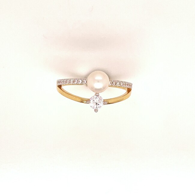 Bague en or jaune 750/1000 perle de culture et oxydes de zirconium