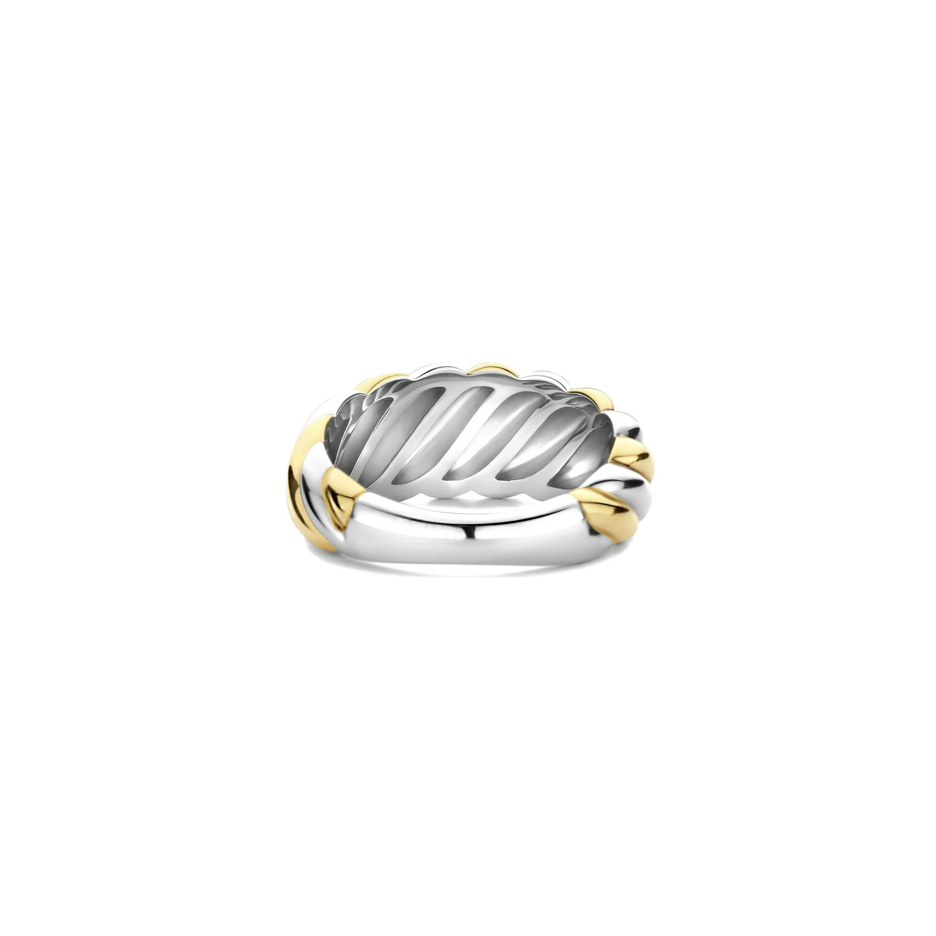 Bague Ti Sento en argent doré, argent plaqué platine et oxydes de zirconium, taille 56