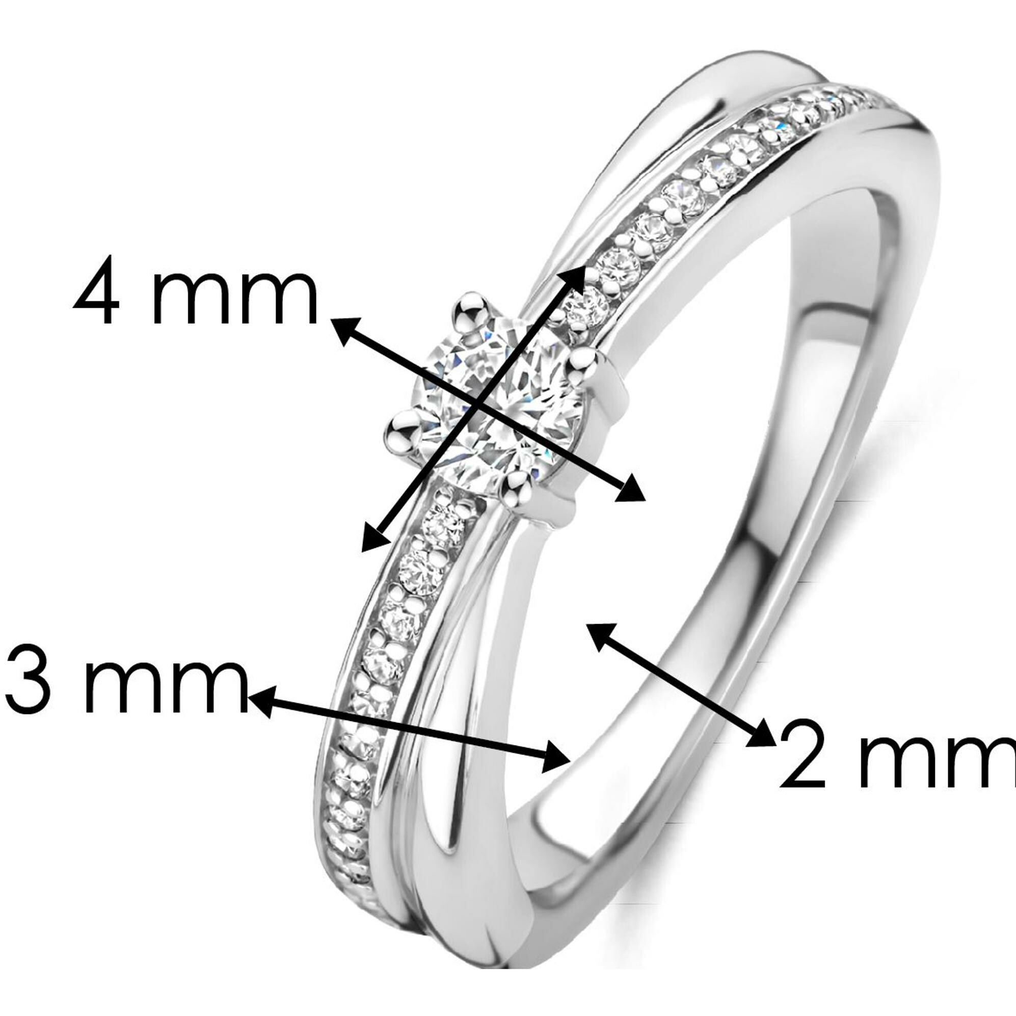 Bague Ti Sento en argent plaqué platine et oxyde de zirconium, taille 52