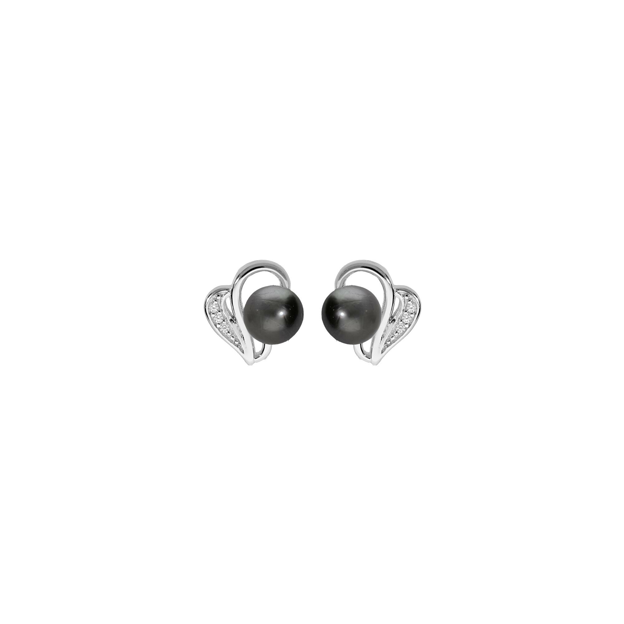 Boucles d'oreilles tige argent rhodié perle de culture de tahiti véritable 7mm et oxydes blancs sertis