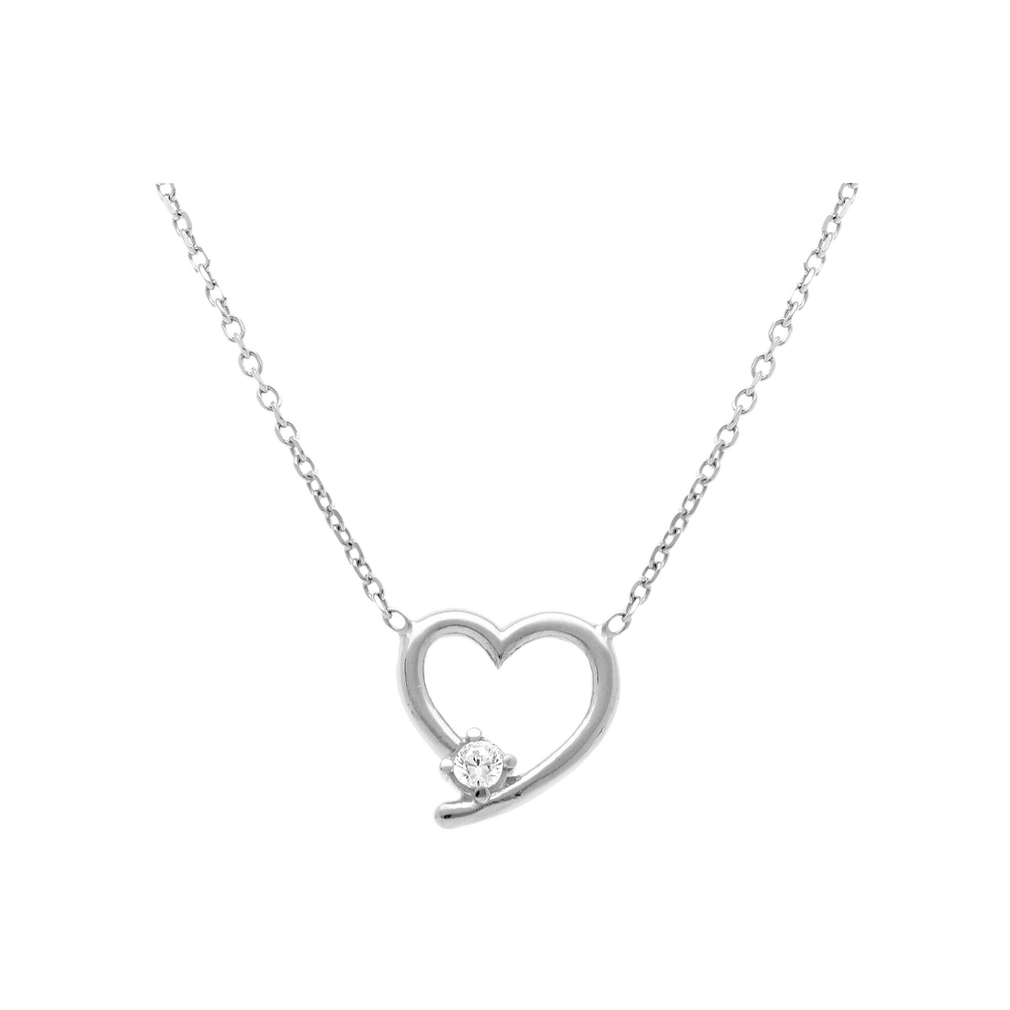 Collier argent rhodié coeur 1 oxyde blanc serti 40+5cm