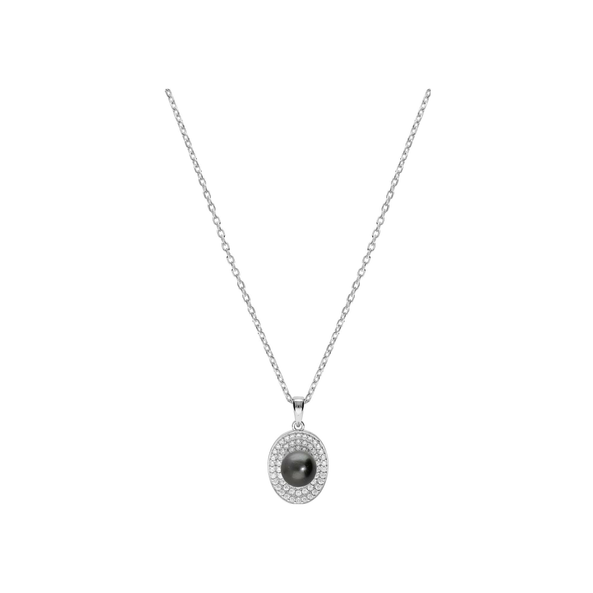 Collier argent rhodié pendentif perle de culture de tahiti véritable 7mm et contour oxydes blancs sertis 42+3cm